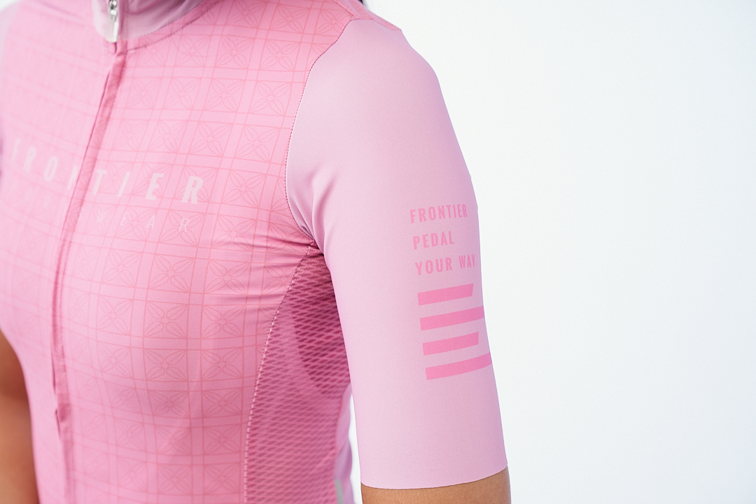 Frontier的設計師推陳出新使用五種款機能強悍的科技面料,並且大刀闊斧改善其固有的裁縫結構,期望能在嚴峻的騎乘環境中,協助騎乘者取得最棒的舒適體感。衣身全身採用台灣在地面料與抗UV義大利高級布料製成,經過多方實戰測試,最終獲得車手極為正面的回饋反應。此外搭配細膩縝密的創新版型剪裁,讓整體車衣包覆度頓時達到前所未有的境界,同時順勢引領氣流以極端滑順的方式從車衣表面迅速通過,展現無可比膩的空力特性。背面配置的反光標籤可明確增強夜間騎行安全,台灣製非矽膠織帶除了可以降低皮膚過敏風險外,還能讓您在長時間的悶熱環境中,輕鬆享受那白駒過隙般的超速快感。