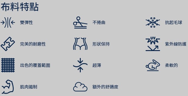 採用義大利 Carvico Revolutional® Zenit 面料,有著緊實親膚,高貼合包覆的特性。