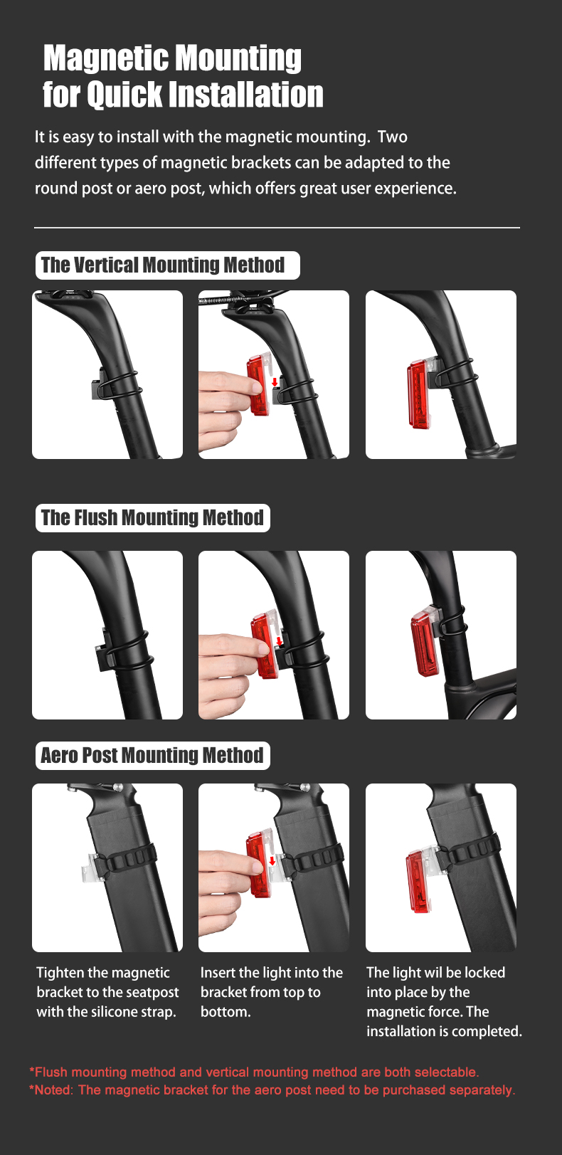 新款磁吸式煞車尾燈,ABS半透明外殼燈身,重量僅18.2g