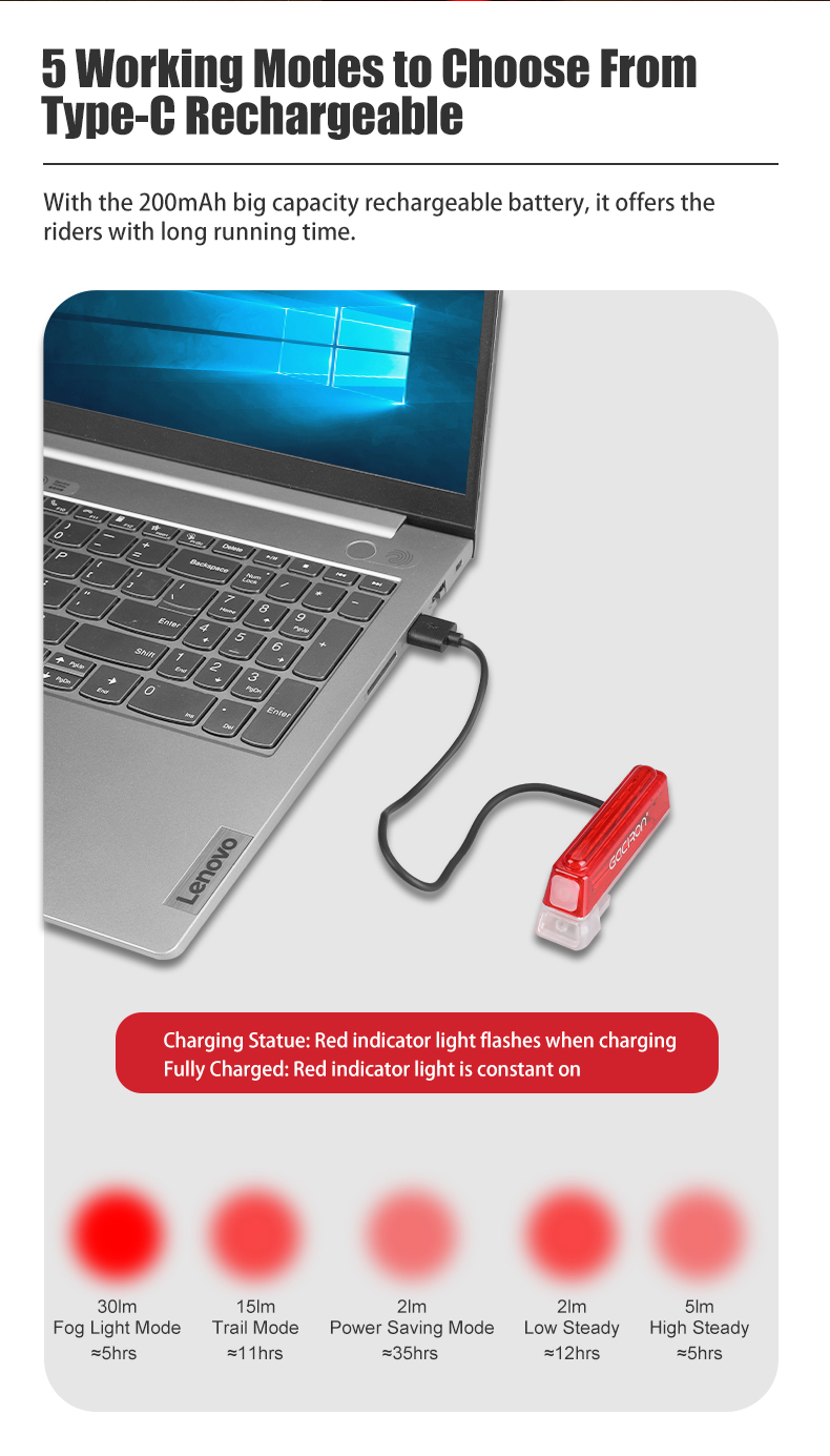 *5種燈光模式 : 低恆亮/高恆亮/低亮閃/高亮強閃/中亮閃