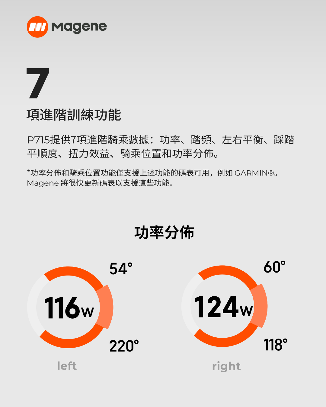 數據瓦數、左右平衡、踏頻、踩踏平順度、扭力效益、騎乘位置、功率分布